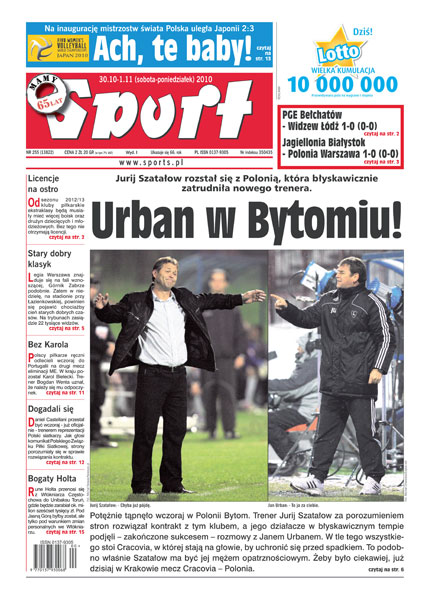 kluby piłkarskie ekstraklasy będą musiały mieć więcej boisk oraz drużyn dziecięcych i młodzieżowych; polscy piłkarze ręczni odlecieli wczoraj do Portugalii na drugi mecz eliminacji ME, w kraju pozostał Karol Bielecki; Daniel Castellani przestał być wczoraj trenerem reprezentacji Polski siatkarzy; polskie siatkarki po dramatycznym meczu uległy 2:3 Japonkom; mecz Aksam Unia Oświęcim - GKS Tychy trwał niecałe 14 minut.