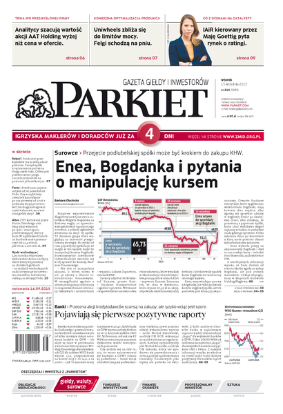 Największy w Polsce newsroom gospodarczy zbiera, analizuje i zgłębia dla Państwa najważniejsze informacje ze świata finansów. Codzienne wydanie „Parkietu”, sześć dni w tygodniu, to kilkadziesiąt artykułów o emitentach, instytucjach finansowych, gospodarce. To również opinie, felietony i wywiady z najważniejszymi ludźmi krajowej i globalnej finansjery.