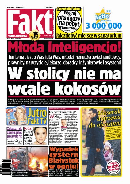 Jak wygrać pieniądze na pobyt w sanatorium; młodzi Polacy którzy właśnie ukończyli studia, mają problem ze znalezieniem dobrze płatnej i dającej satysfakcję pracy; zobacz, jak będzie wyglądał nowy dom prezydenta Bronisława Komorowskiego; Nergal znalazł dawcę szpiku; dwa pociągi wiozące gaz i benzynę zderzyły się w Białymstoku; Rafał Maserak wydoroślał i teraz dojrzewa do roli ojca rodziny.