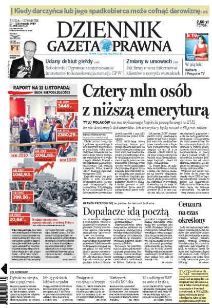 Dziennik Gazeta Prawna – codziennie obiektywne i rzetelne informacje z kraju i ze świata. Piszemy o tym, co dziś ważne i odpowiadamy na Wasze pytania – szczególnie te związane z obecnymi wyzwaniami tj. pandemia, praca zdalna. Na bieżąco wyjaśniamy zmieniające się przepisy. Wspieramy się wyjaśnieniami ministerstw i urzędów. Pomagamy unikać błędów i ostrzegamy, jakie są kary. Ponadto w każdy piątek specjalne magazynowe wydanie Dziennika Gazety Prawnej w całości z tekstami społeczno-ekonomicznymi.